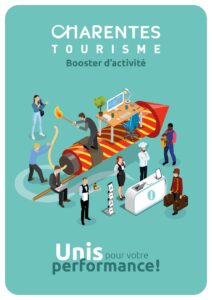 La signature « Booster d’activité » définit le positionnement de la structure, ce qu’elle a de singulier, de spécifique : un positionnement de start-up, propulseur destiné à accroitre le développement de l’activité des acteurs du tourisme sur le territoire des Charentes.