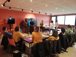 – Le Binôme : constitution d’un binôme, travailleur pair/travailleur social. Durant les 2 jours de stages, les regards croisés des 2 formateurs va se compléter et permettre aux stagiaires de « faire un pas de côté ». Au-delà de la complémentarité, c’est le regard des personnes ressources et travailleur pair qui permet la rencontre et l’expression sans tabou des stagiaires. Le fait qu’une personne qui a connu la précarité devienne « formatrice » grâce à l’expertise de son parcours de vie est motivant.
