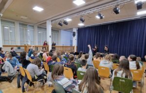 A l’issue du spectacle, un temps de discussion entre les élèves et les comédiennes vient compléter efficacement leur contenu.